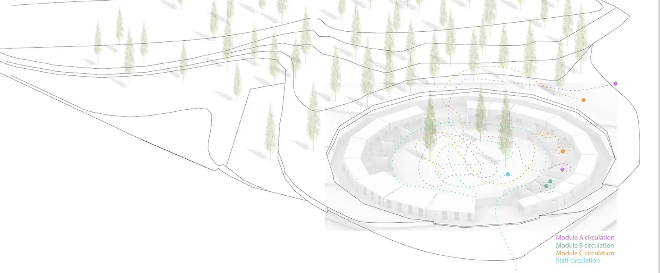 Gümüşhacıköy Animal Shelter is organized with a circular courtyard typology for efficient oversight.